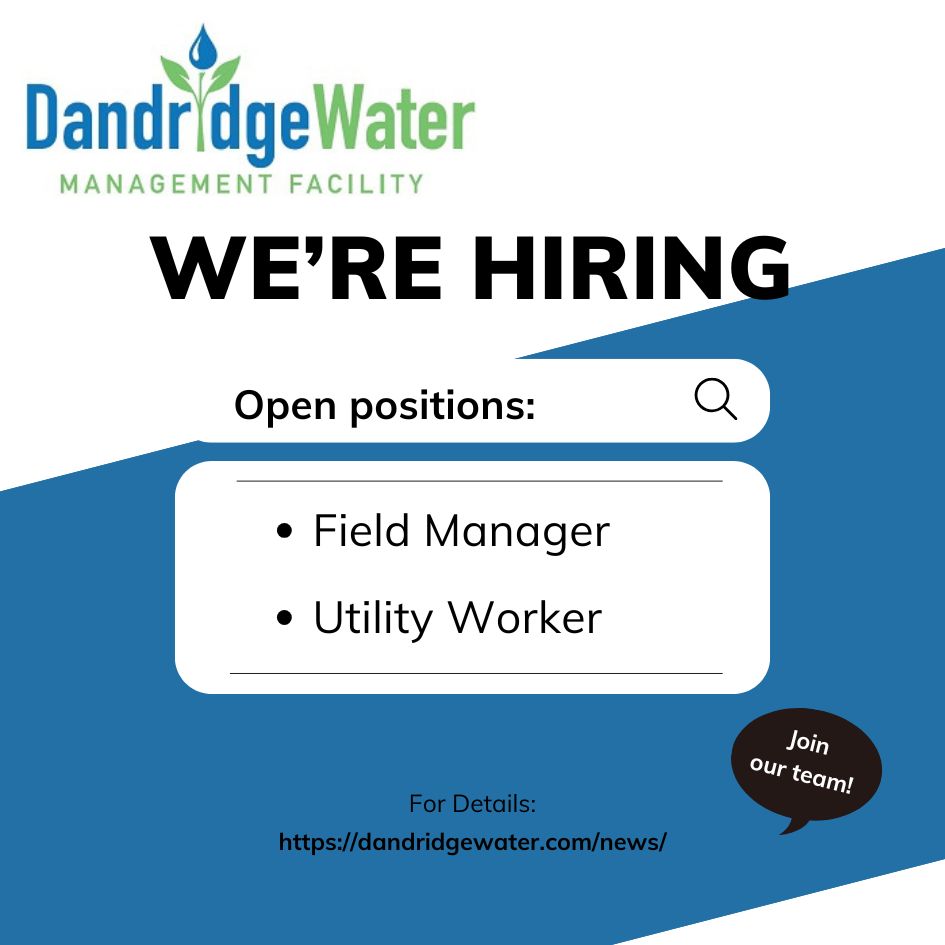 The Town of Dandridge is now accepting applications for the positions of Field Manager and Utility Worker for the Dandridge Water Management Facility.  A complete job description and employment application may be picked up and returned to: Dandridge Water Management Facility at 1114 Wastewater Rd. Dandridge, TN. All resumes must be accompanied by a completed and signed employment application and can be mailed to:  Dandridge Water Management Facility, PO Box 68, Dandridge, TN 37725 or e-mailed to water@dandridgetn.gov.  For more information and to receive the job description and application, please call Dandridge Water Management Facility at 865-397-3696 or download below.  Applications will be received until the positions are filled.  Dandridge is an Equal Opportunity Employer and does not discriminate based upon all applicable federal, state, and local law.
